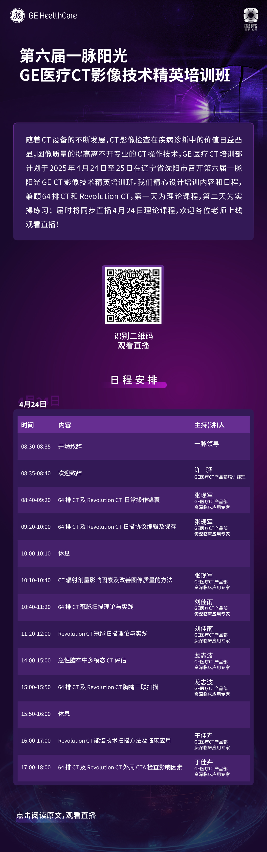 培训班直播-第六届一脉阳光GE医疗CT技术精英培训班