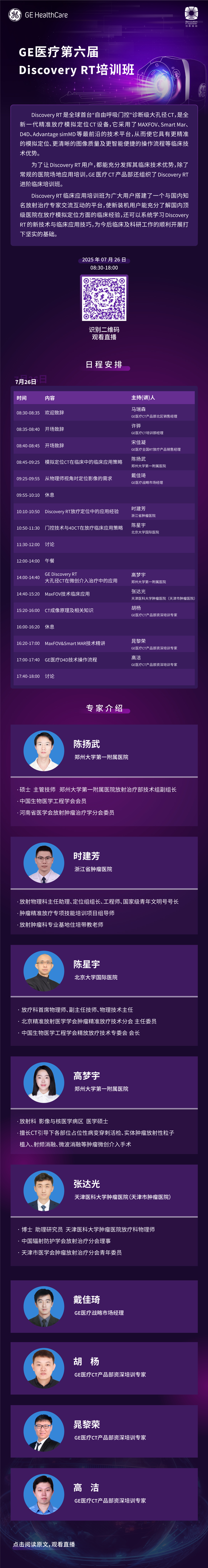 题目:培训班直播-GE医疗Discovery RT临床应用培训班