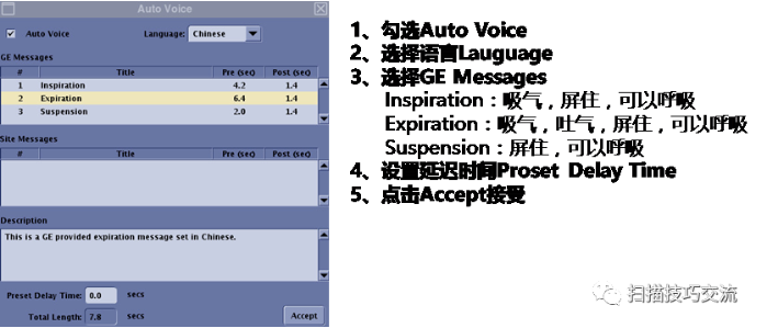 5、复制粘贴程序 使用该图标可复制粘贴程序,只要两个序列之间的扫描层面匹配,即可复制划线。单击该图标,选择需要复制的序列,勾选需要复制的参数,包括扫描范围、饱和带、局部匀场等,单击Accept。2D与3D序列的定位线只能复制扫描范围,modeFilter需选择相应的平面。