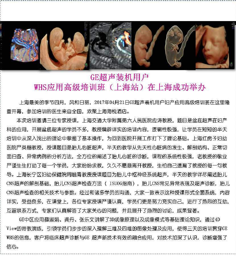 GE超声装机用户WHS应用高级培训班在上海成功举办