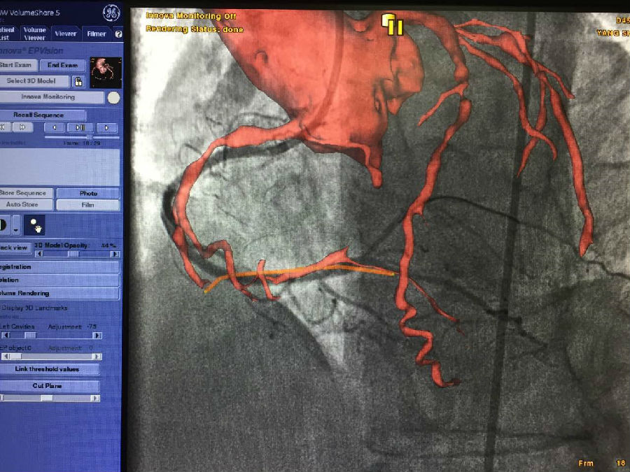 (2)术中智能3D实时引导CTO开通,融合影像与心跳/呼吸同步--可精确引导,降低风险,减少造影剂的用量,缩短手术时间