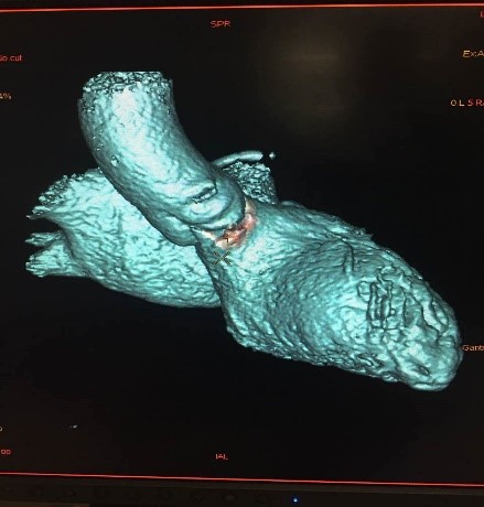在室间隔缺损的患者中,行介入封堵术常常需要用猪尾导管行左室造影,以确定室间隔缺损的形态、大小和缺损上缘距主动脉右冠瓣的距离。另需要依据造影测量的缺损直径选择封堵器的规格,封堵器释放过程中需要通过术者手感、透视和超声,甚至心室造影确定封堵器的位置,以确保无残余分流。 GE 心脏高级解决方案可依据患者术前 CT 重建心脏3D解剖结构,术前可测量缺损直径和规划缺损路径,术中实时引导封堵手术,提高手术精度。 具体操作步骤如下: 术前规划:DSA直接处理CT数据