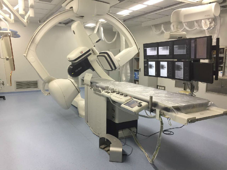 IGS630是双C臂血管造影机,具有强大的功能,可以同时从两个角度显示病变的情况,为诊疗工作提供了更好的辅助。 邯郸市第一医院购入的GE Innova IGS 630安装在综合病房楼八楼复合手术室。复合手术室适用于高危的心脑大血管疾病、复杂的冠心病、血管外科等疾病的内外科联合治疗。复合手术室的百级层流洁净条件是独立开展复杂血管手术必不可缺的一个条件。设备投入使用后,医院复合手术室将可以同时进行外科手术、介入治疗和影像检查,将内、外科治疗的优点有机地结合起来,实现两种不同种类的治疗方法放在同一平台上观察、施用,同时又降低了两者各自的不利影响。从而实现传统的导管室和标准外科手术室两者融合,达到"1+1"大于2的效果。首次培训期间,完成了多例介入手术。 GE Innova IGS 630双C臂血管造影机优越性简介: (1)动静脉畸形栓塞过程中,可以同时观察到栓塞胶在血管内向各方向的扩散情况,避免了误栓其他血管分支,最大限度地保证了患者的安全; (2)置入造影导管/微导管过程中不同角度同时观察,不需要随着置管的深入而不断改变投射角度; (3)一次完成两个角度造影,减少了造影剂的用量,降低了肾脏损害的风险,同时缩短了造影时间,提高了病变检出率。 (4)一次旋转采集数据后可形成实时三维路图引导,该3D图像可投射在透视图像上,并随机器角度变化而变动,实时、高效指导微导管选择性插管; (5)动静脉畸形/瘘的血流分析功能及路径选择功能,分析畸形团血流信号,电脑提示血流走向及栓塞路径; (6)一次三维重建获得减影三维、蒙片三维数据,单独染色显示弹簧圈/动脉瘤夹,可直观显示动脉瘤手术效果; (7)颅骨、肿瘤、血管三维成像并融合技术,以及DSA、CT、MRI融合功能,可结合显示血流与肿瘤、颅骨的位置关系,尤其在血流重建手术评估、动脉瘤开颅手术方案选择中十分重要; (8)各角度、各断面重建,清楚显示血管内支架贴壁、展开、血管再狭窄情况; (9)利用DSA数据进行血流灌注分析。