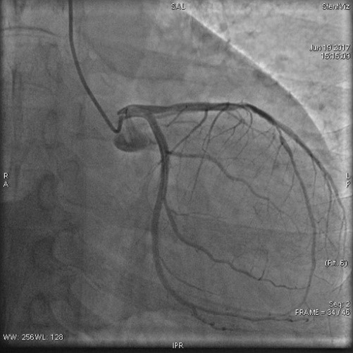 病例名称:支架精显功能在冠脉介入中的应用 病史: 男性,50岁 主因“间断胸痛半年,加重半天”入院。 曝光模式及参数: Dynamic,15f/s 造影表现: 经右桡动脉行CAG示:前降支中远段重度弥漫性狭窄。