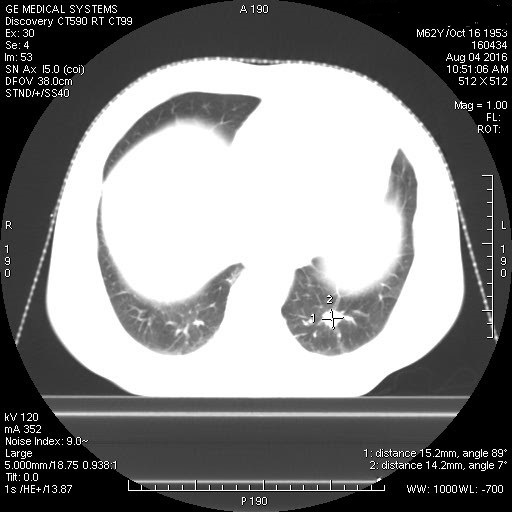 病例资料:男性,62岁,左下肺转移肿瘤。 扫描方法: 常规CT平扫