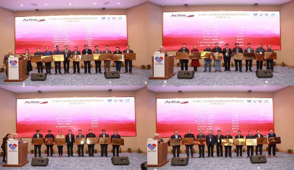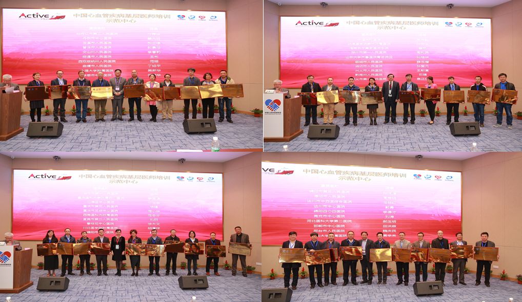 方唯一教授做项目介绍 方唯一教授代表中国心血管健康联盟就2018年中国心血管疾病基层医师培训项目进行介绍。方唯一教授表示,在2017年取得可喜成绩的基础上,2018年项目整装待发,进行线上线下整合互动,通过一个标准(CET考核标准及挂牌)、三大模块(导师备课会、基层病例评选、医院手拉手)的合理运行,打造中国心血管疾病基层医师培训平台。方唯一教授还介绍了中国心血管远程教育学院基层学院,作为基层医师培训的线上载体,2018年将通过大会转播、手术转播、远程查房、病例讨论、手术演示,学术培训等多种形式开展线上基层医师培训。方唯一教授表示:远程教育学院基层学院的建立和运行将方便优质资源下沉、提高培训的效率、降低专家和医生的时间成本:实现“大牌专家不出院,基层医生不出科”、极大丰富了教学手段和内容以及形式。 随后,会议主席葛均波院士、方唯一教授及ACTIVE项目各省牵头专家共同为91家17年参与项目且通过审核认证的单位颁发《中国心血管疾病基层医师培训示范中心》奖牌,在随后的启动仪式中,项目主席及专家共同宣布中国心血管远程教育学院基层学院全面启动,2018年中国心血管疾病基层医师培训项目正式起航!