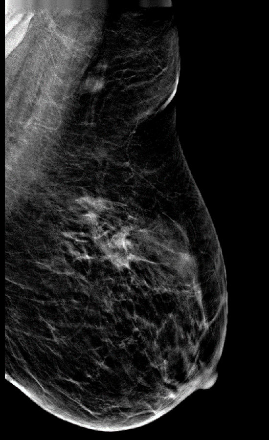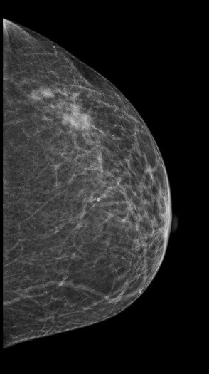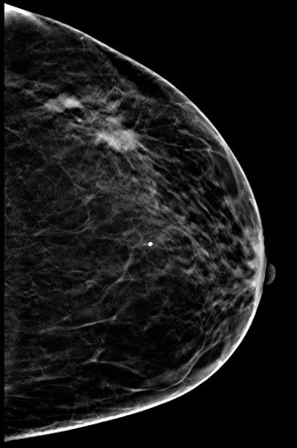 左乳局限致密伴钙化,BI-RADS 4C 。