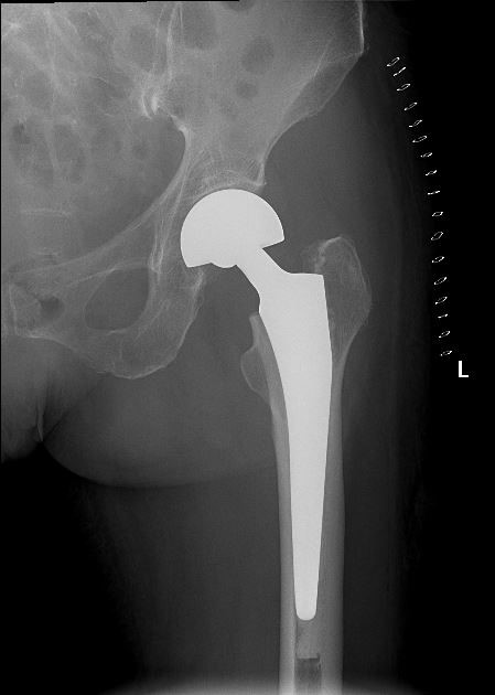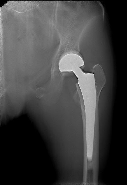 容积断层图像可以清晰显示置换的股骨头与髋臼的关系,也可以清晰显示植入物与股骨干之间的嵌合情况,为术后评估提供影像资料。