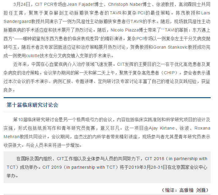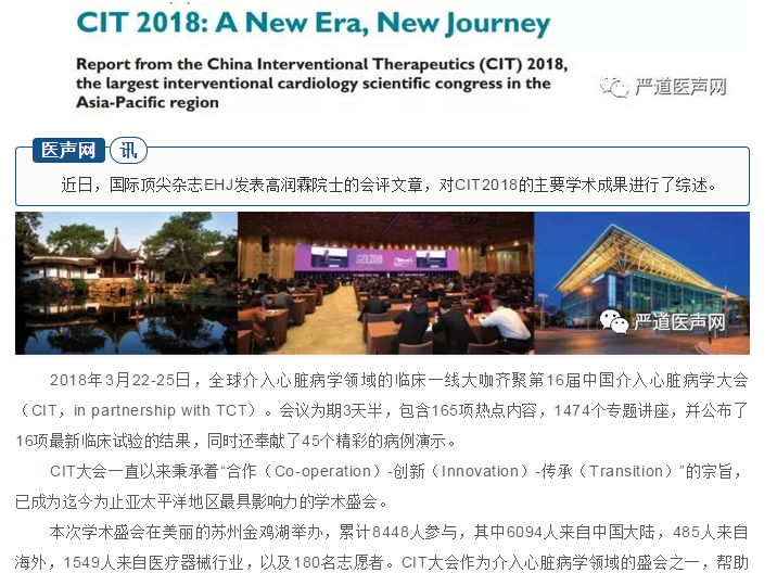 EHJ 发表高润霖院士会评:CIT 2018新时代,新征程