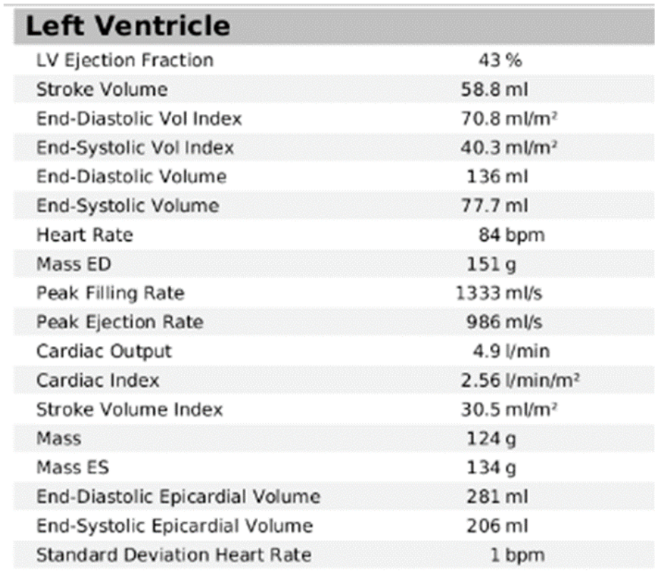 前言:Deep Learning:让古老的MR焕发新春 一、病史 主诉:心脏术后1年余,活动后胸闷1年。 现病史:缘于入院前1年余因“二尖瓣关闭不全”于外院行“二尖瓣成形”,术顺,术后规律服药,1年前无明显诱因出现胸闷、气促,爬3层楼即出现症状,休息后稍缓解,无胸痛、心悸,无端坐呼吸、咳粉红色泡沫样痰、无夜间阵发性呼吸困难,无腹胀、眼黄、尿黄、肢体浮肿,无畏冷、发热、无黑膘、晕厥,无食欲减退、消瘦,就诊外院完善相关检查后诊断“心力衰竭”,予诺欣妥、信他乐克、螺内酯、达格列净等药物治疗,上述症状仍反复发作,今为进一步治疗就诊我院查心脏彩超:二尖瓣成形术后;二尖瓣轻度返流,左室收缩功能重度减退,EF:28.9%,为进一步诊治,门诊拟“心力衰竭”收治入院。自发病以来,精神、食欲、睡眠尚可,二便正常, 体重无明显改变。 既往史:平素体质一般,否认“高血压、糖尿病、冠心病”等慢性病史,否认肝炎、结核、菌痢、伤寒等传染病史,否认其他手术、输血、外伤史,否认过敏史,预防接种按时完成。 个人史:生于原籍,否认长期外地居住史,否认疫区居留史,否认特殊化学品及放射线接触 史。否认吸烟、饮酒史。 婚育史:已婚未育,配偶体健。 家族史:否认家族中类似疾病史。否认家族中“血友病”等遗传性疾病史及"糖尿病、恶性肿瘤”等遗传倾向性疾病史。否认家族中´病毒性肝炎、结核病、伤寒、痢疾”等传染病史 男性,年龄30+。心衰查因。