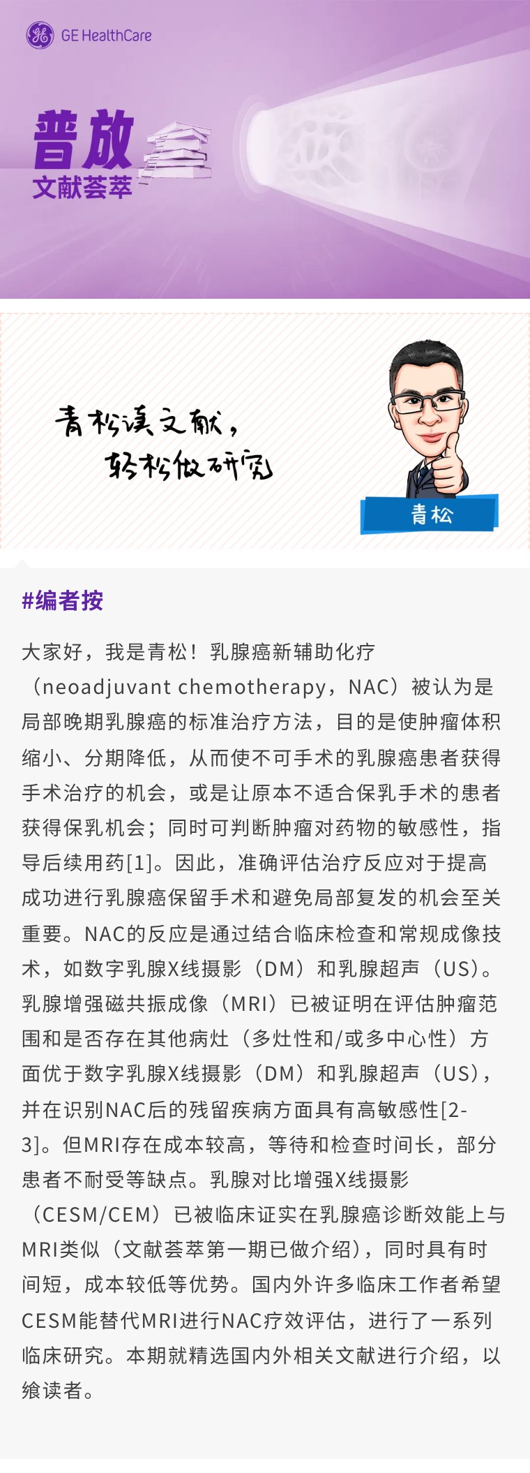 第13期:乳腺对比增强X线摄影(CESM/CEM)在乳腺癌新辅助化疗(NAC)疗效评估中的价值