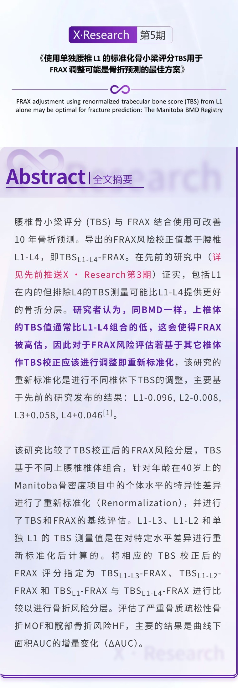 第5期《使用单独腰椎L1的标准化骨小梁评分TBS用于 FRAX 调整可能是骨折预测的最佳方案》
