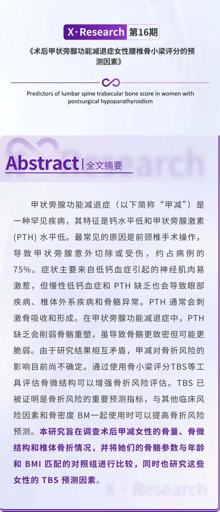 第16期《术后甲状旁腺功能减退症女性腰椎骨小梁评分的预测因素》