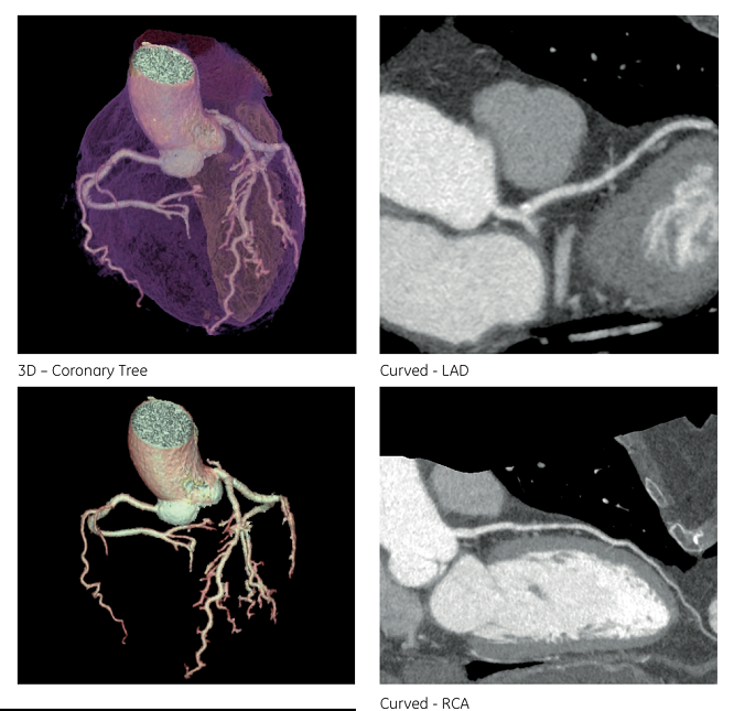 结论 该患者心率较快(屏气前心率为77 BPM,扫描时心率为69 BPM),采用80kV、单心跳舒张期采集,得到满足临床诊断的图像质量,而患者所受射线剂量仅为 0.25 mSv。(图2)。 On this patient with a relatively high heart rate & #40;77 BPMbefore apnea, 69 BPM during acquisition& #41;, the exam was performed within asingle diastolic phase, at 80 kV, enabling diagnostic quality images to beacquired at a quarter of a milliSievert.