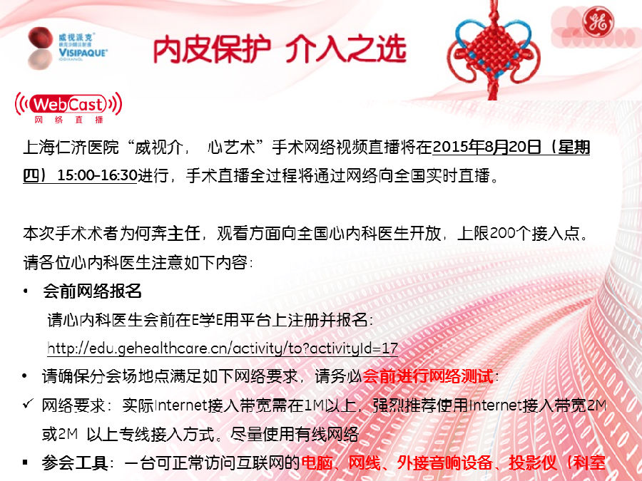 【活动报名】“威视介心艺术”手术网络视频直播——上海仁济医院站