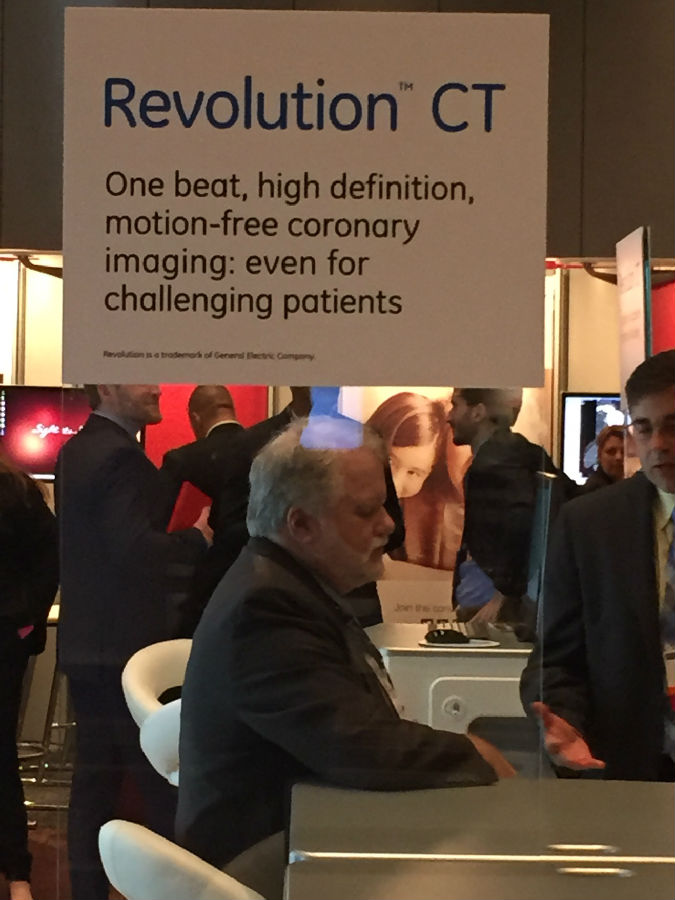 GE公司不仅是大会的钻石赞助商,更是技术领域重要的合作伙伴。此次更是携Revolution CT和Discovery GSI两款重磅新产品征战SCCT,反响强烈。从GE的展台上就专注传递着这样的信息: 1. One beat, high definition, motion-free coronary imaging; even for challenging patients; 2. Whole-heart dynamic perfusion and CCTA in one exam; 3. Comprehensive capabilities for precise TAVR planning.