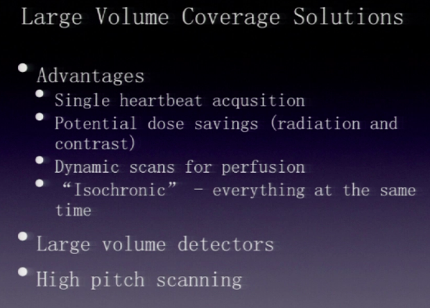 另外,在功能成像方面,尽管CTP处于研究阶段,受辐射剂量、数据准确性、检查流程等因素影响尚未进入临床化的阶段,然而其重要意义不言而喻。新型等焦宽体探测器和ASiR-V全模型迭代等技术的出现从原理上解决了数据准确性的问题,剂量问题和硬化伪影问题,“同时同相”的采集方式有助于提高心肌灌注评价和腔内显影梯度 & #40;TAG& #41;的准确性,并带来4mSv以内的常规剂量心肌灌注,必将使CT功能学成像的研究和临床化向前迈进一大步。相信随着宽体CT的进一步普及,技术的不断进步,会有更多令人振奋研究成果的发布。 温馨提示: 由国际心血管CT协会中国区委员会主办,中国医学科学院阜外医院承办的国际心血管CT 协会中国区论坛(第四届年会)将于2016年10月28日-10月30日在北京友谊宾馆召开。让我们共同期待下一个SCCT的精彩呈现。