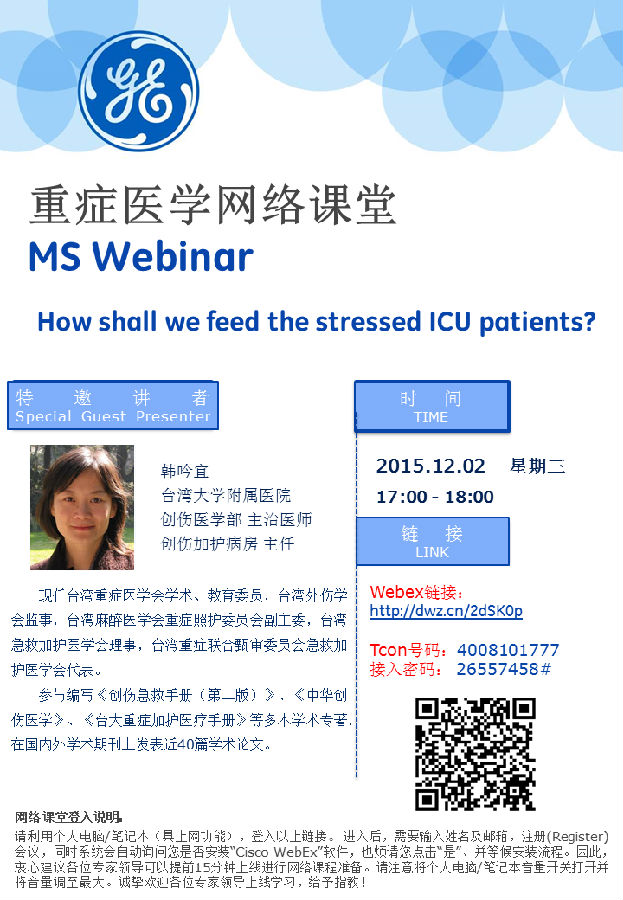 重症医学网络课堂 12.2精彩呈现 特邀讲者:台湾大学附属医院 韩吟宜主任