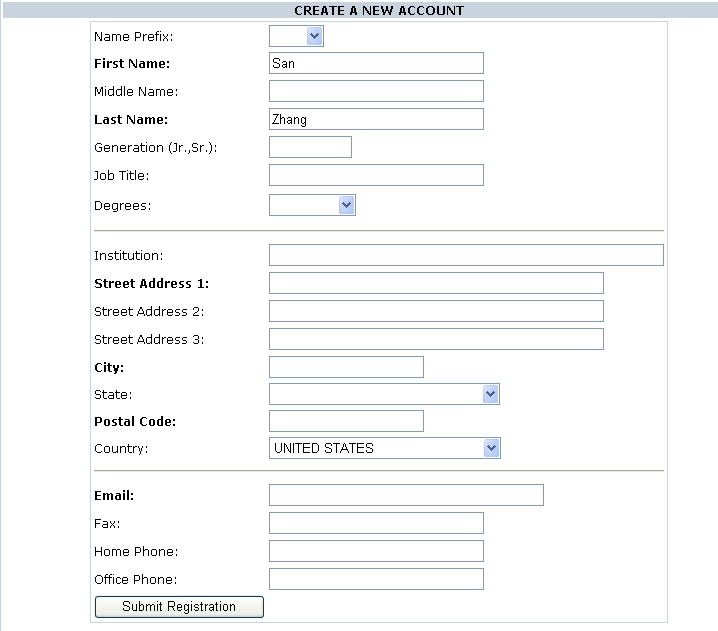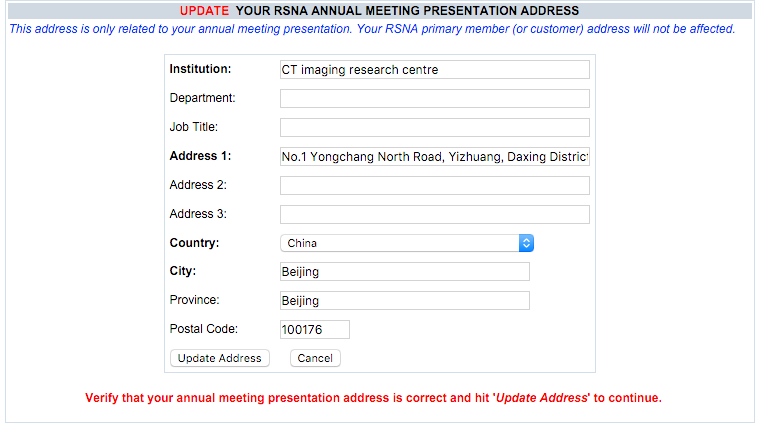 接下来需要输入您的用户信息,创建帐号,值得注意的是,Email地址一定要填写准确,此后RSNA的各种信息都会通过注册时的Email地址发送给您。