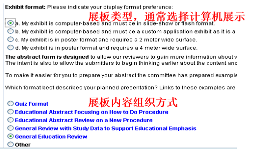 10、选择递交类型 如果我们选择教育展板,需要准备5张ppt用于审稿,投稿过程和学术发表类似,不同之处仅如下问题。