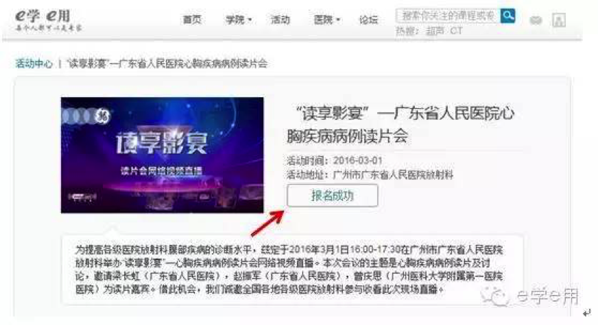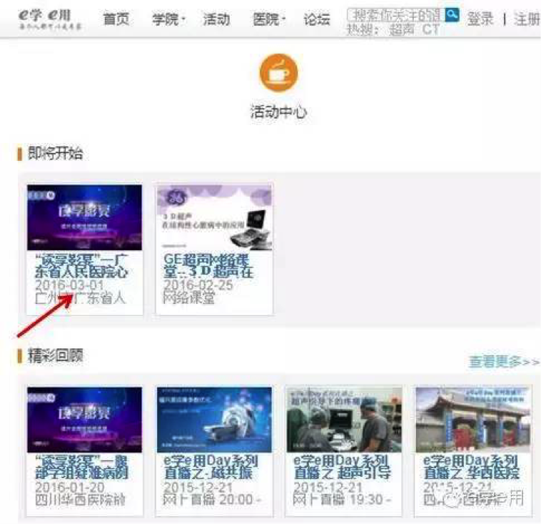 点击下方链接,进入e学e用网站,快速报名活动,精彩即刻启程↓↓↓ 网站链接:http://edu.gehealthcare.cn/activity/list/to