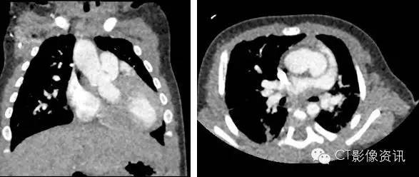 快(转速 280ms) 扫描时间短,曝光采集时间窗更精准,对比剂注射总量减少,保护幼儿肾功能,同时避免了上下腔高密度对比剂伪影,以免干扰肺动脉和肺静脉观察。时间分辨率高,心腔内部结构显示好,检查时减少了因患儿躁动或哭闹造成失败的风险。