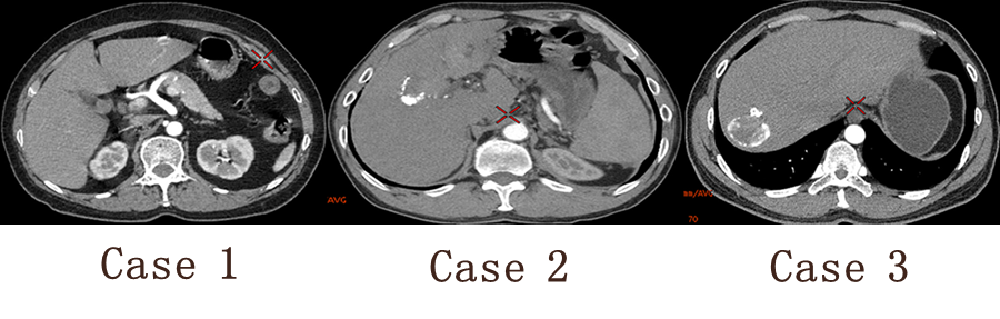 能谱CT诊断: Case 1 血管瘤 Case 2 肝癌介入术后碘油沉积 Case 3 肝包囊虫