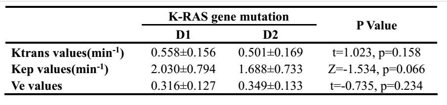 表4:D1和D2的Ktrans值、平均Kep值和平均Ve值
