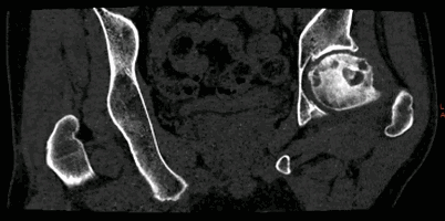 病例1:髋关节4D成像。Revolution CT 采用16cm探测器覆盖范围的连续扫描即可得到关节动态图像。此临床应用目的为鉴别撞击综合症和股骨头坏死。