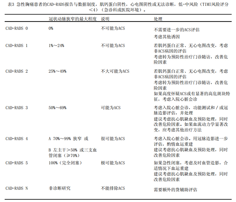 基于CAD-RADS分类,该共识还提出了对于稳定或急性胸痛患者进一步管理的具体建议。