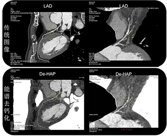 钙化(硬化斑块)是导致冠脉狭窄过度评估的重要原因。冠脉能谱去钙化是能谱技术在冠脉上的全新应用,可以有效预防冠脉狭窄的过度诊断,降低冠脉诊断的假阳性率,提高诊断的准确性