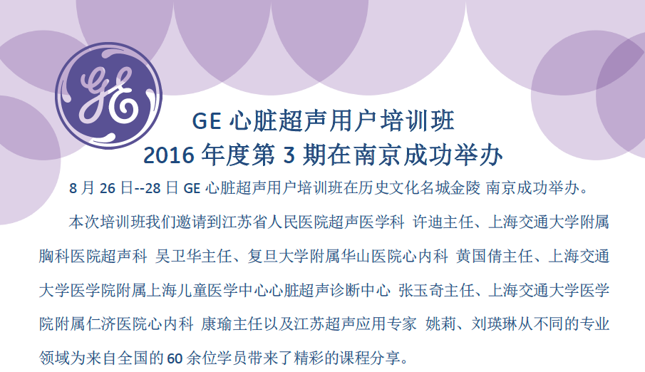 GE心脏超声用户培训班在南京成功举办