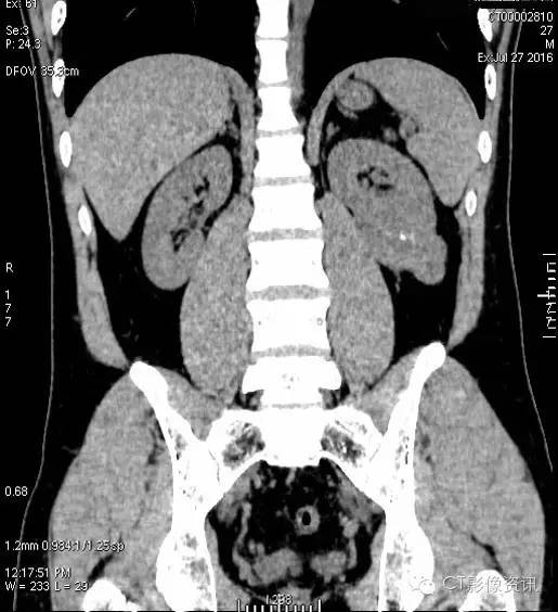 左肾病灶与左肾实质存在差异;右肾病变依然呈“勺”状曲线。
