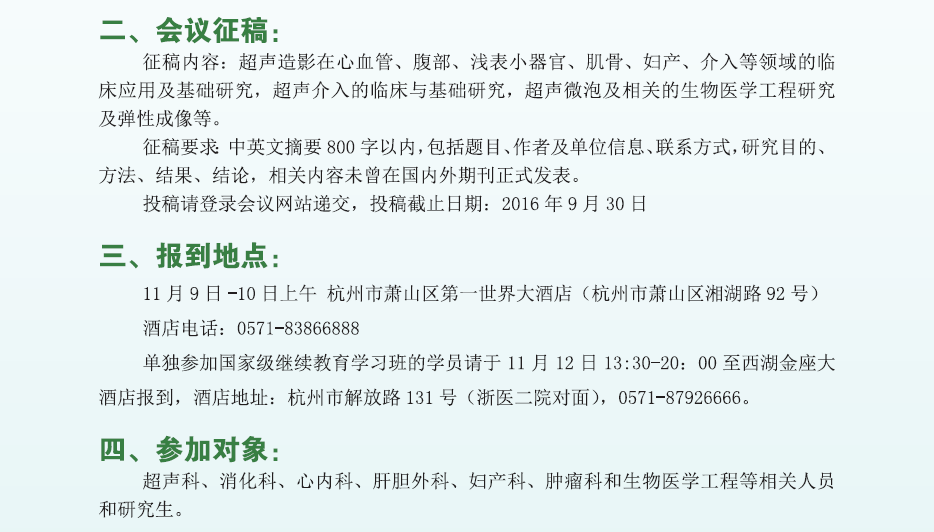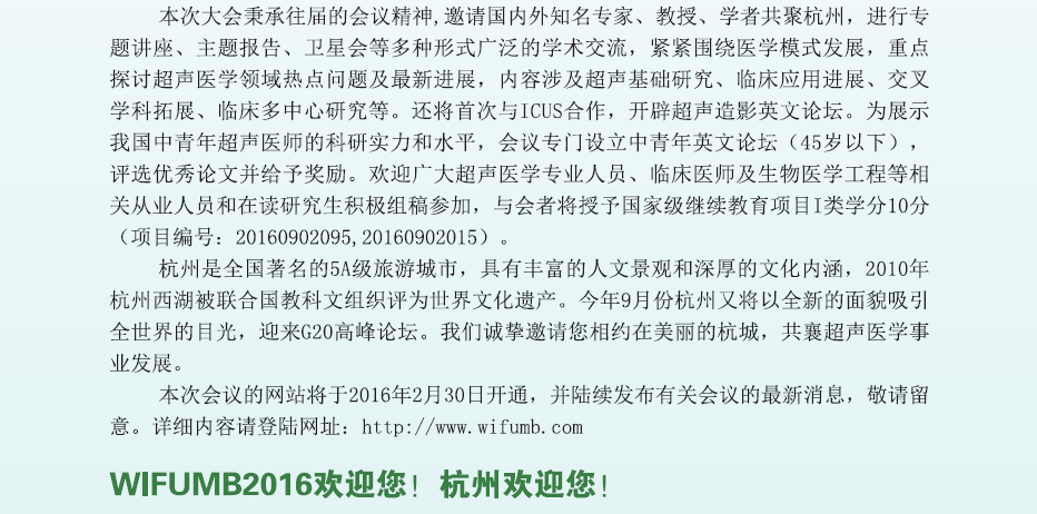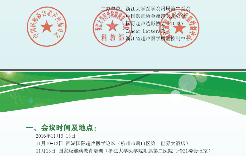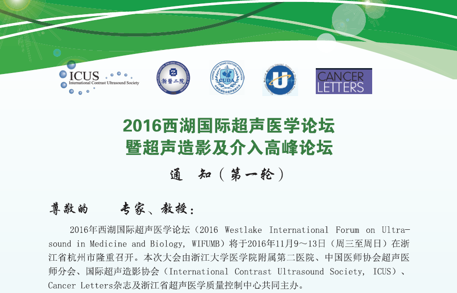 2016西湖国际超声医学论坛将于11月9-13日在杭州举行