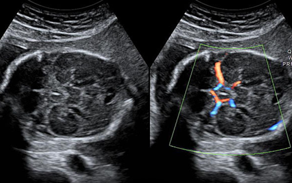 产科_胎儿颅脑_颅脑正中矢状面:正常胼周动脉