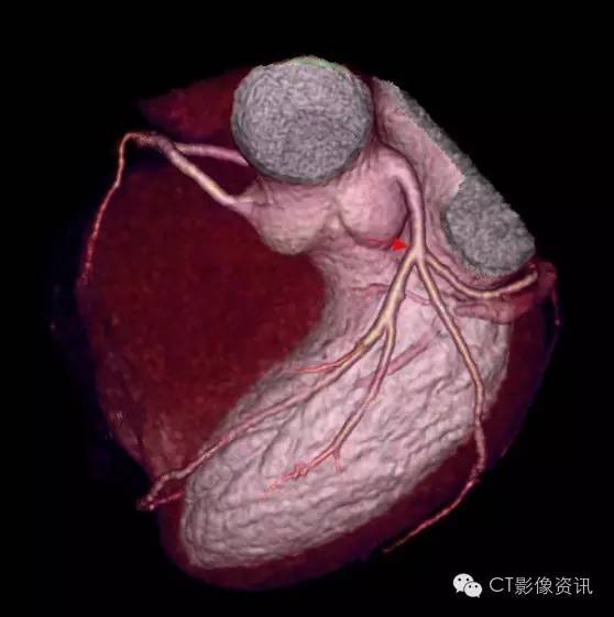 发现了另一处病变:VR图清晰显示第二个问题:LMA与LAD交界处的狭窄